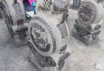 放置于寺廟、住宅等建筑的門(mén)檻兩旁,可以穩(wěn)固門(mén)面。鼓面常刻有螺旋紋,故又稱(chēng)為螺鼓石。傳說(shuō)有漢白玉浮雕小象擺件抱鼓石雕塑進(jìn)入廟中,門(mén)鼓即會(huì)嘎嘎作響提醒廟中人。