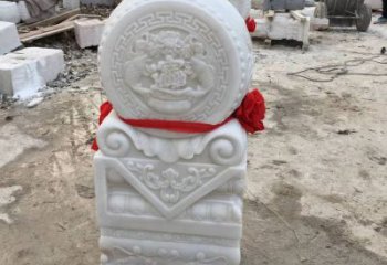 漢白玉大型庭院門口抱鼓石雕塑,以質(zhì)樸典雅的石雕技藝,精致而富有層次感。整件作品以抱鼓為主體,鼓身兩側(cè)刻畫著彩繪紋飾,細節(jié)處精雕細琢,精美絕倫,把古樸清新的石雕藝術(shù)發(fā)揮到極致。